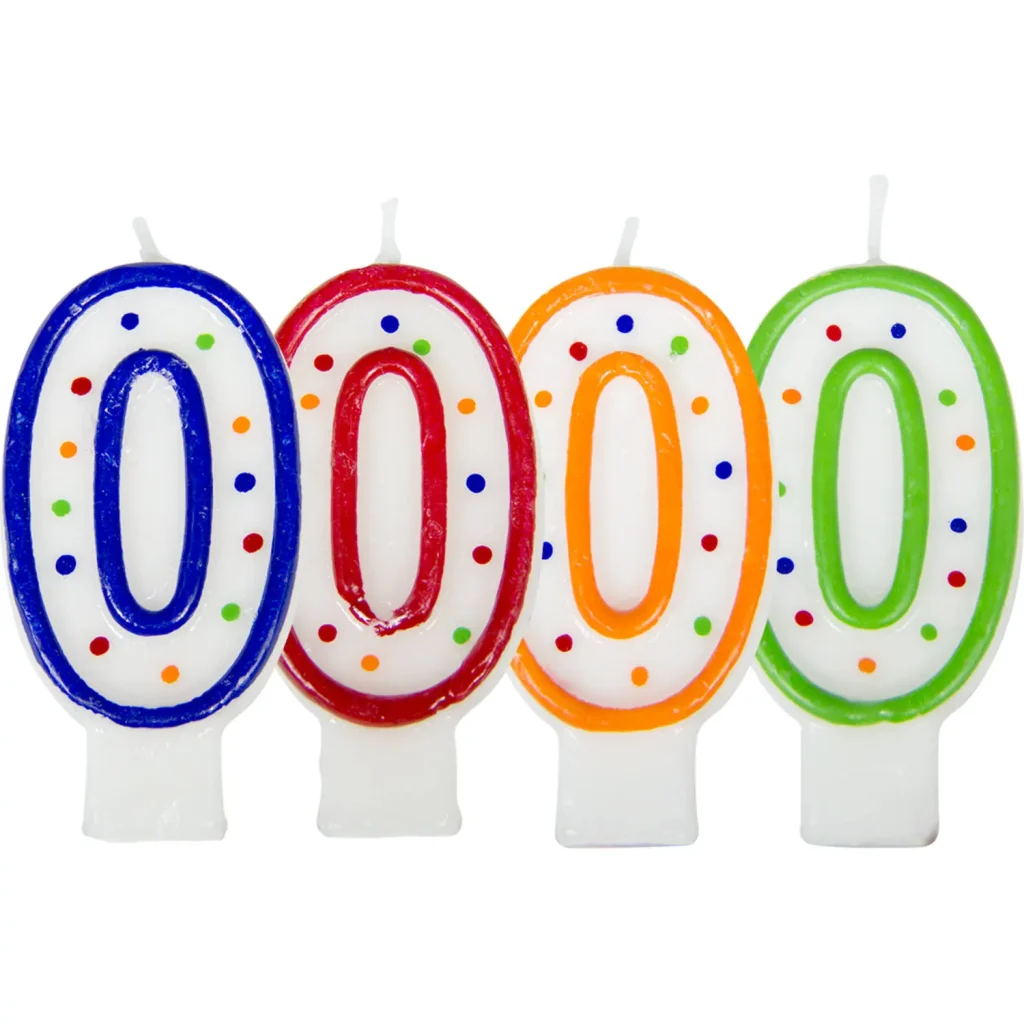 Verjaardagskaars cijfer 0 - wit met gekleurde stippen