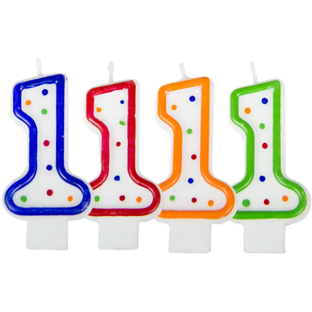 Verjaardagskaars cijfer 1 - wit met gekleurde stippen