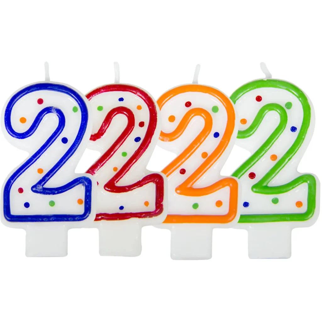Verjaardagskaars cijfer 2 - wit met gekleurde stippen