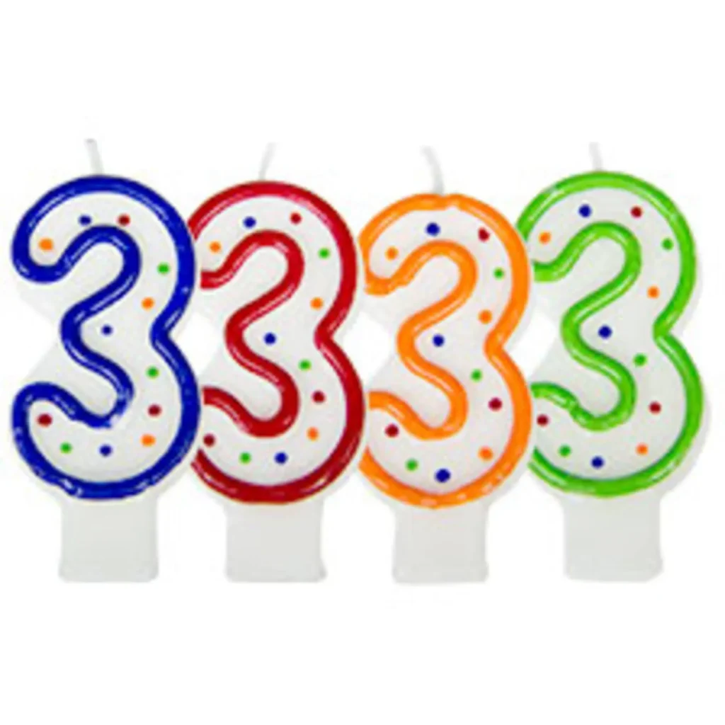 Verjaardagskaars cijfer 3 - wit met gekleurde stippen